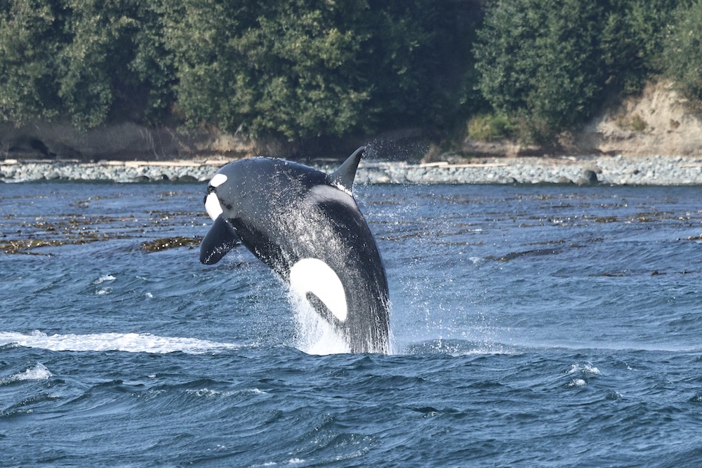 All of a sudden, the entire family stalled out near a large kelp patch and the surface behaviors began! Nearly constant breaching, headstands, tail lobs and pec slapping started and didn’t stop…for over 20 minutes! Guests and crew were too in awe to actually count, but estimated we witnessed nearly 50 breaches before we had to turn and head home (and they were still going)! All the crew agreed it was the most consistent surface activity we’d ever seen from a pod of Bigg’s, and felt so lucky we were in the right place at the right time to take it all in. – Naturalist Rachel R.
