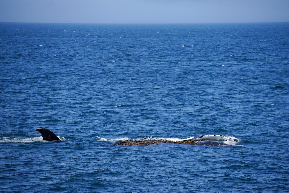 On July 27th, our Half Day tour out of Port Townsend witnessed a humpback whale seaweed spa session! This behavior known as “kelping” is seen by many whale species, by rolling around in large floating bull kelp patches the kelp acts as a natural exfoliant for whales and helps remove barnacles and potential parasites. We felt so lucky to see CRC-15970 “Zephyr” playing in the kelp out in the Strait of Juan de Fuca.